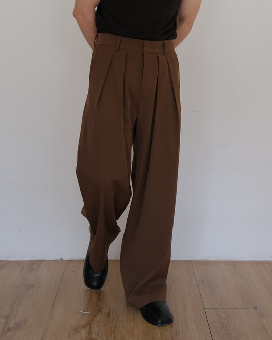 MARLO REVERSE PLEATED TROUSERS - BROWN