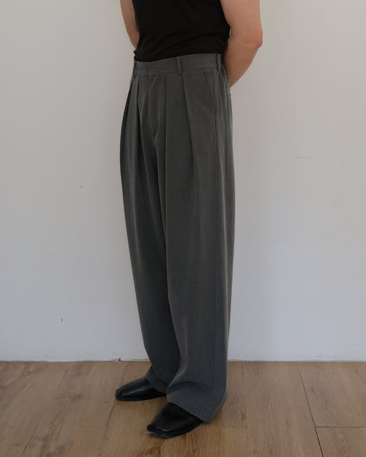 LEON REVERSE PLEATED TROUSERS - GRAY