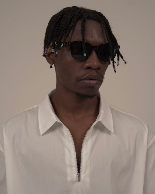 Sold outHALF SLEEVE ZIP SHIRT - WHITE