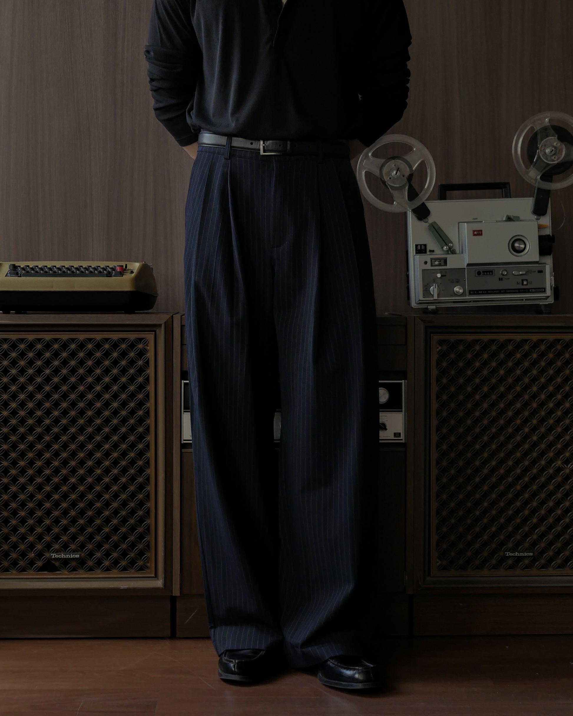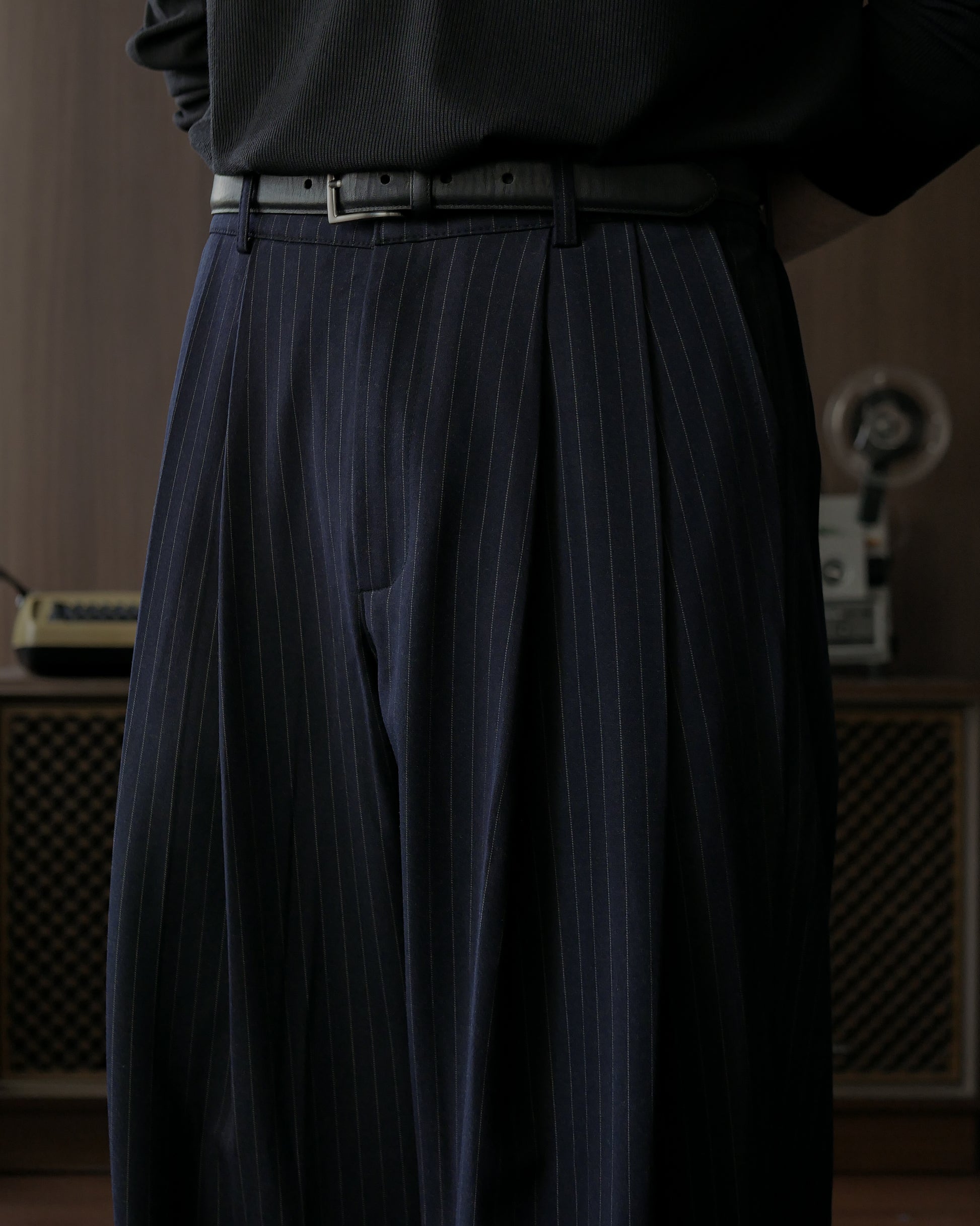 ADRIANO DOUBLE PLEATED TROUSERS - NAVY PINSTRIPE