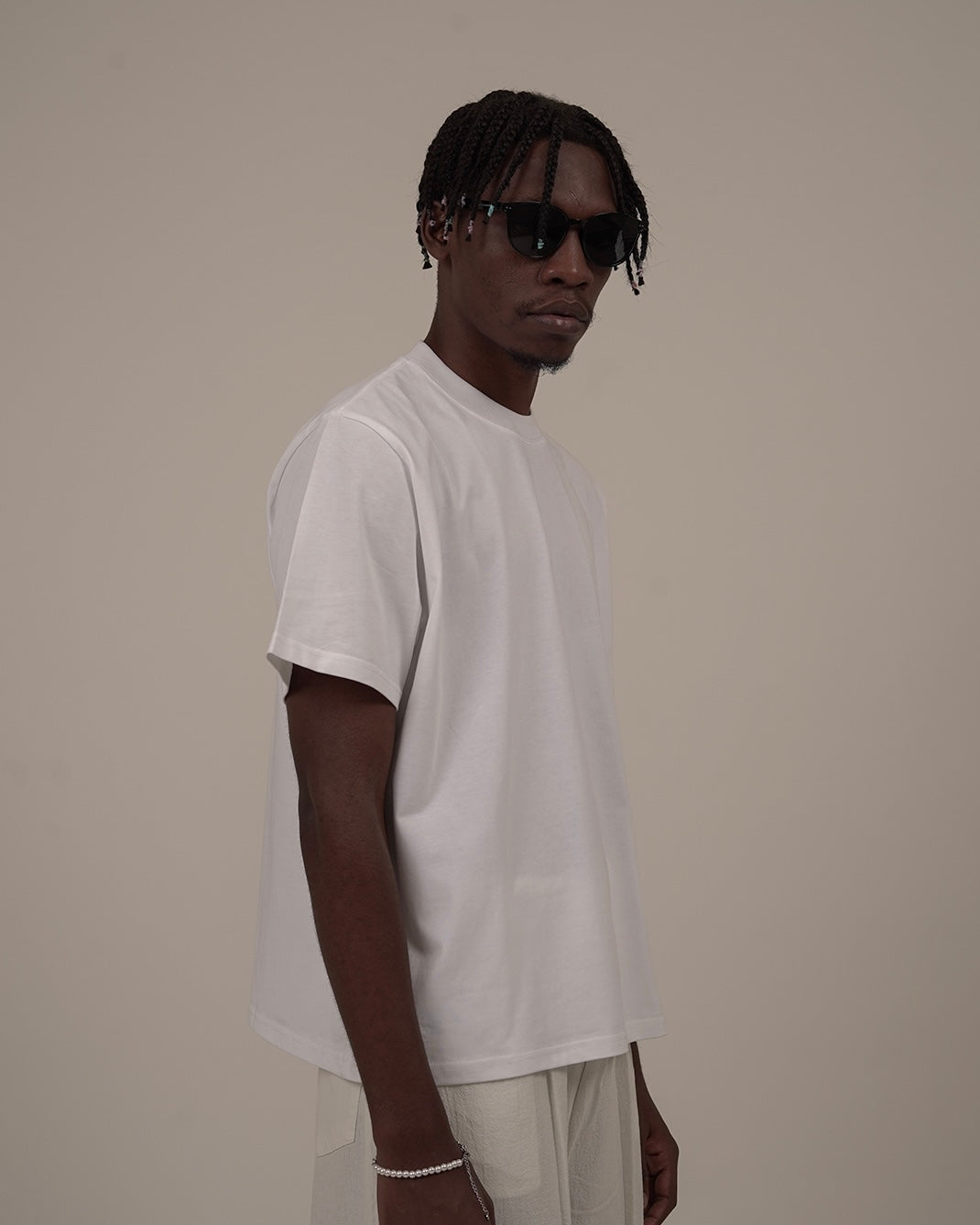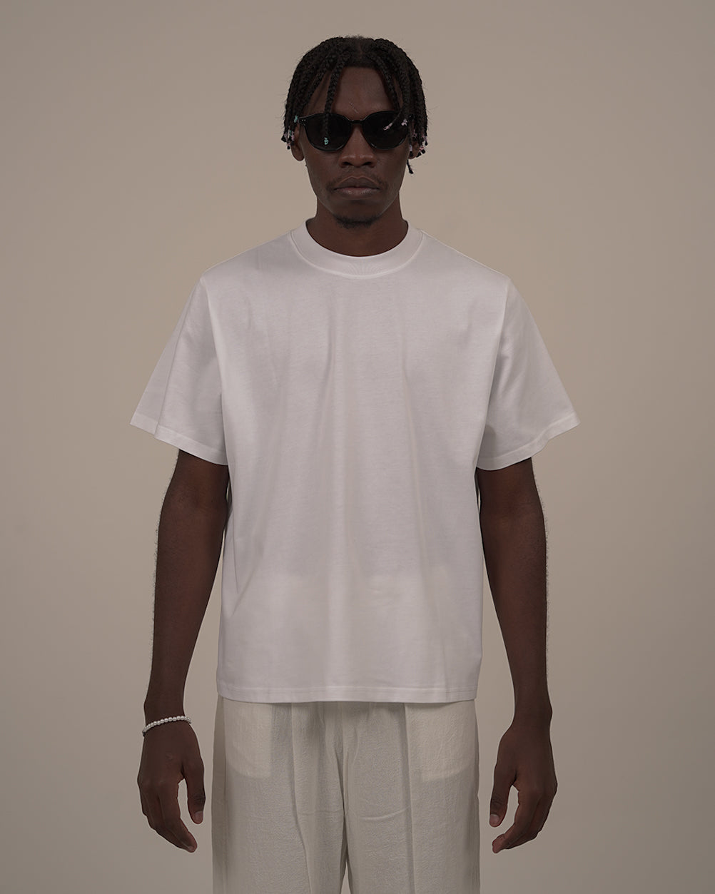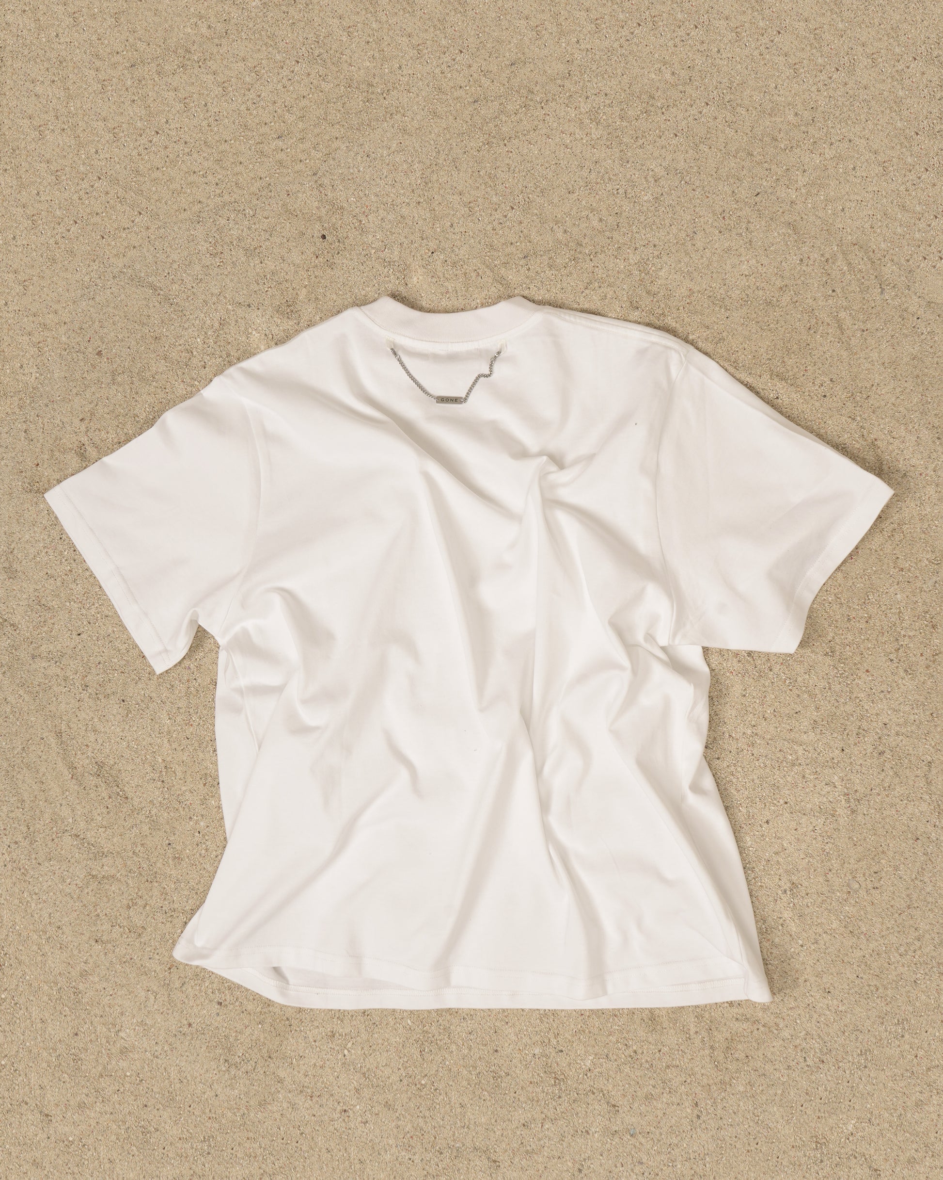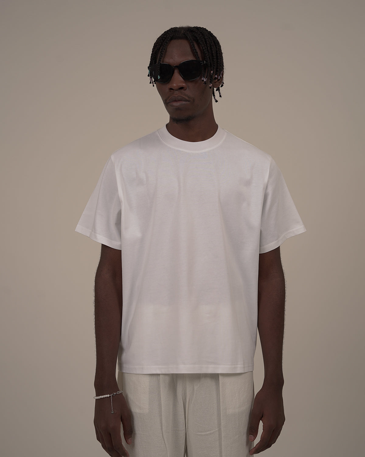 The Daily T-Shirt is our idea of an essential every day t-shirt. Cut from 240gsm cotton fabric, it features a ribbed neckline, a box fit, and a cropped length that finishes at the waist. The signature silver tag detail on the back makes it a perfect stand alone piece to any minimal outfit.