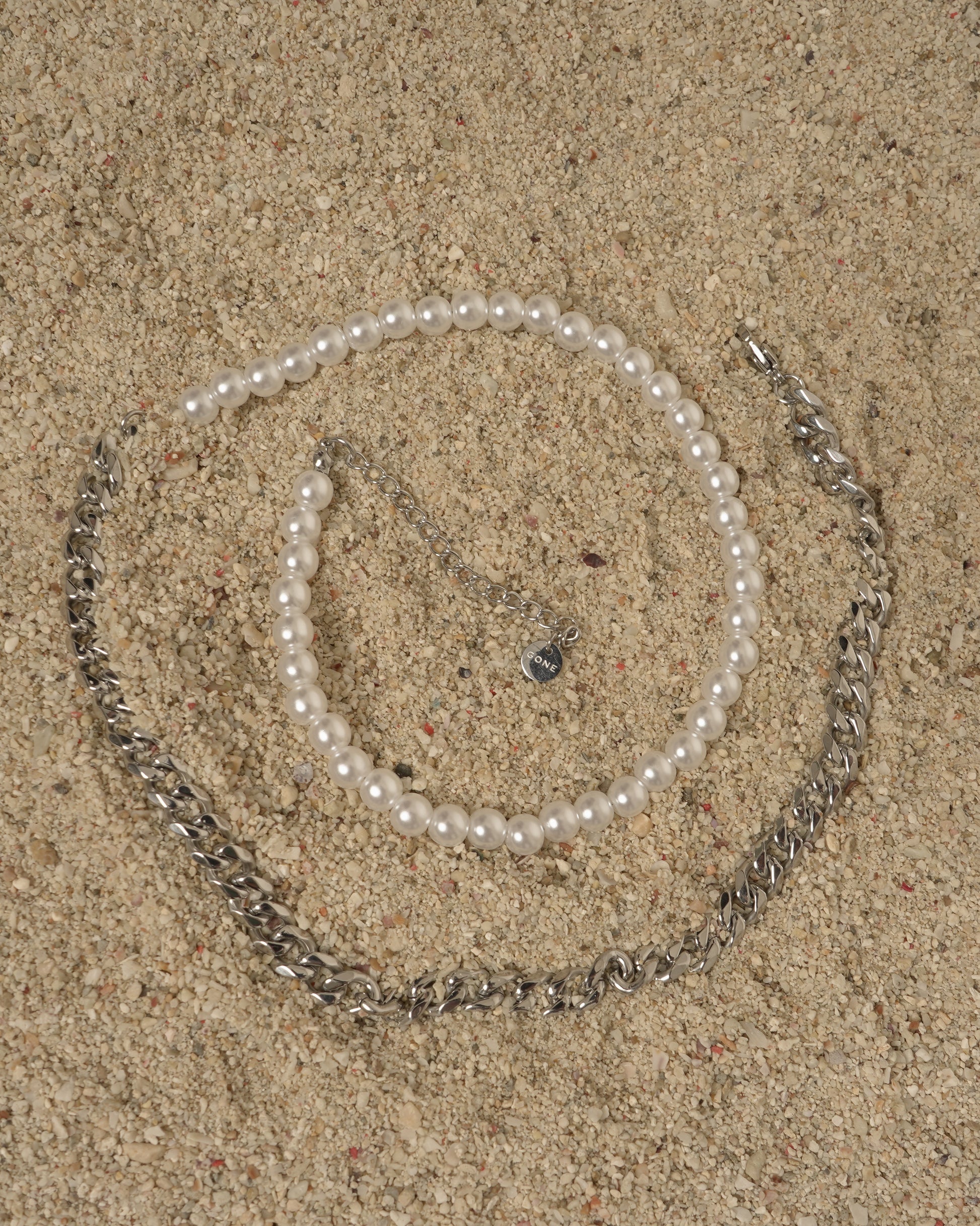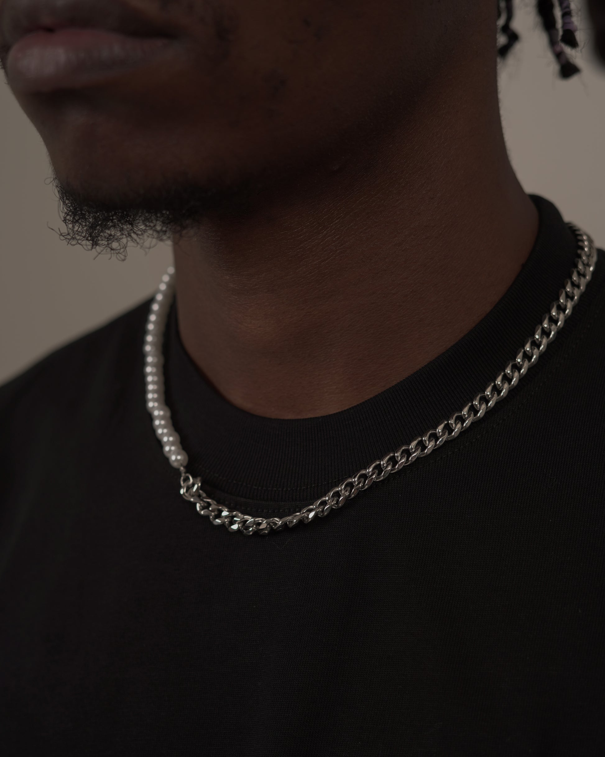 The casual minimalism of a cuban link meets the eternal class and elegance of pearls. A perfect convergence of both worlds.