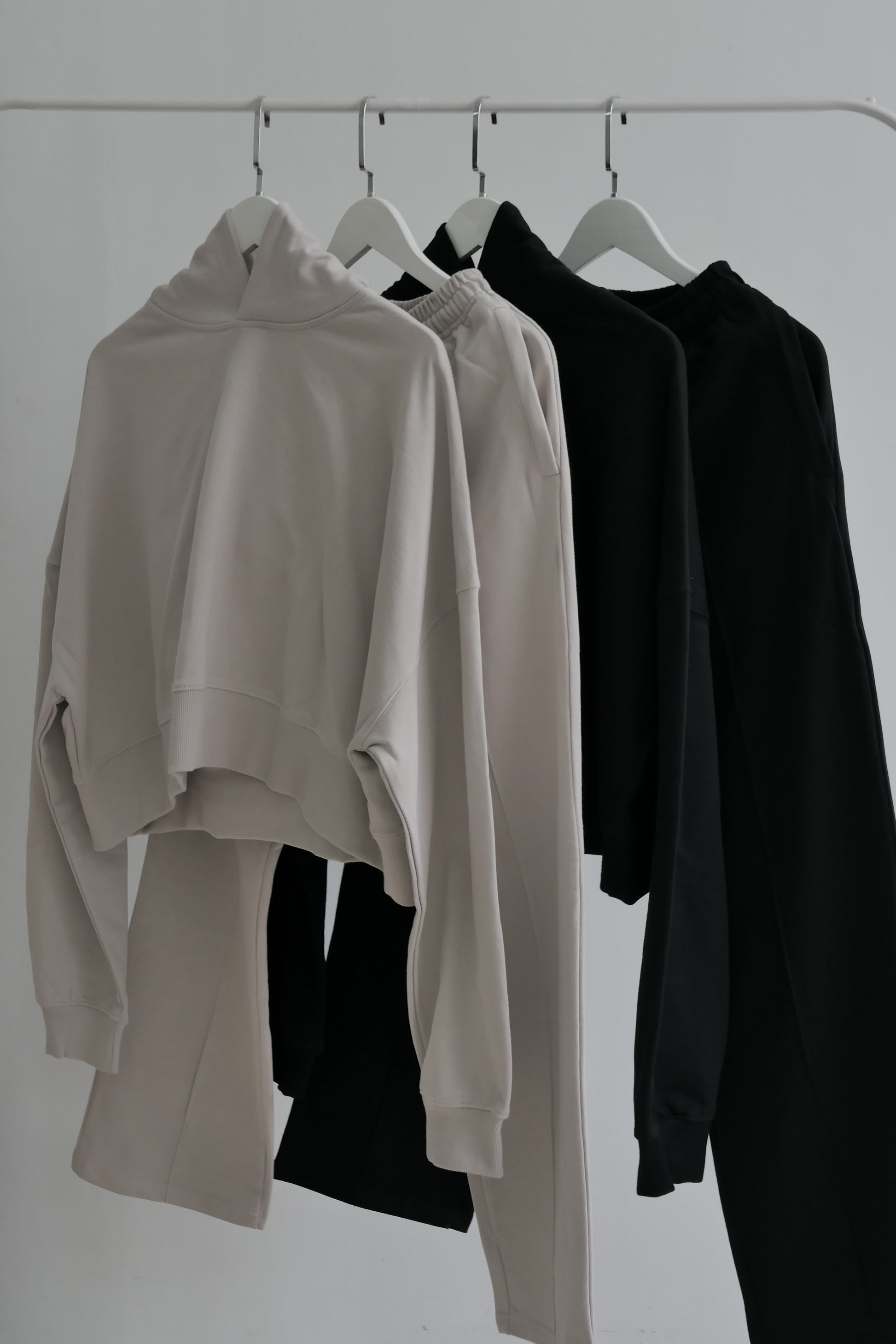 The Daily Set is a promotional coordination set that includes the Daily Cropped Hoodie and Daily Wide Sweatpants. Each is cut from a luxury 380gsm cotton jersey fabric for superior quality and comfort.