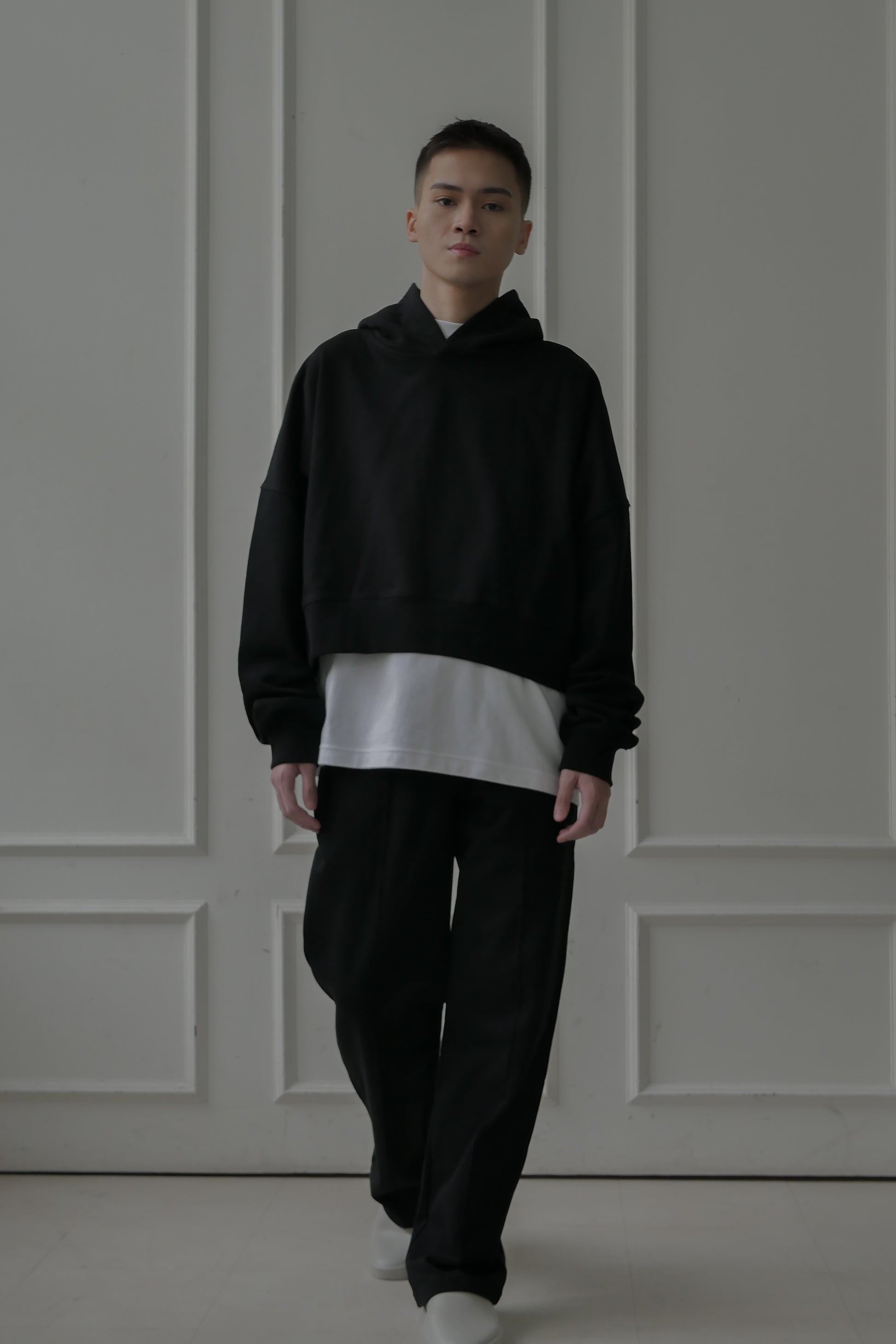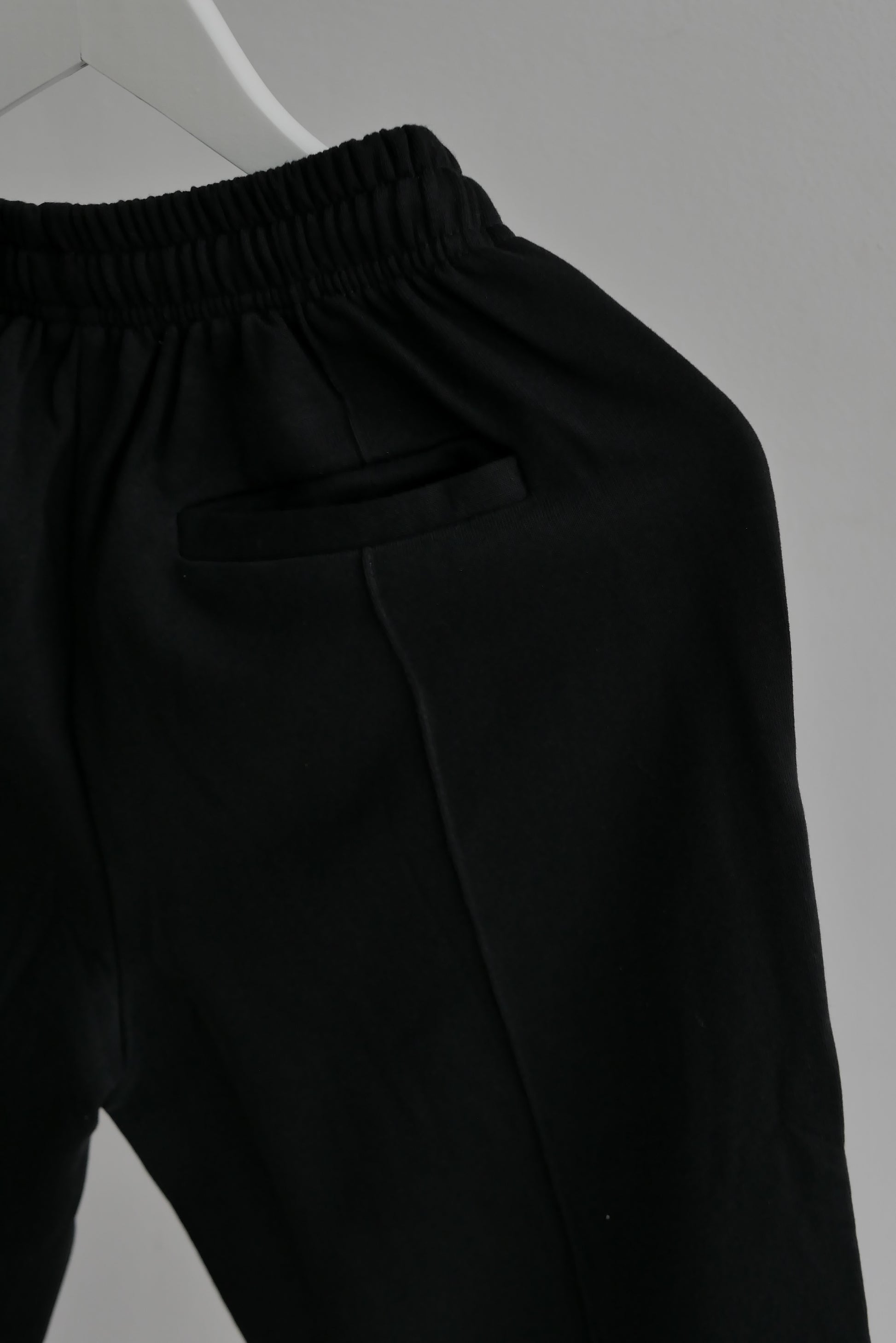 The Daily Wide Sweatpants in Black. Cut from a luxury 380gsm cotton jersey fabric for superior quality and comfort. Specifically designed to have a relaxed fit, featuring a front and back center seam detail for a more elevated look.