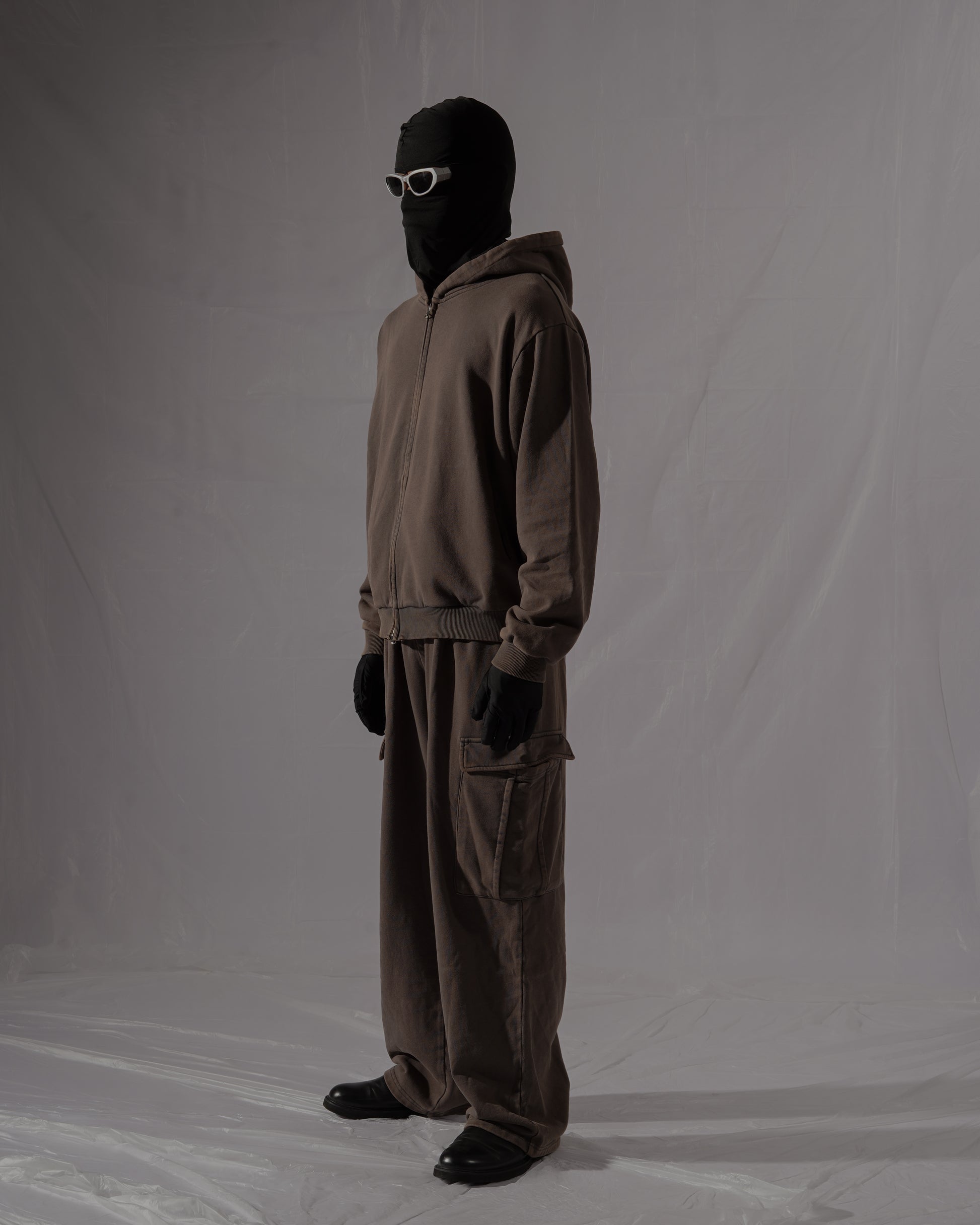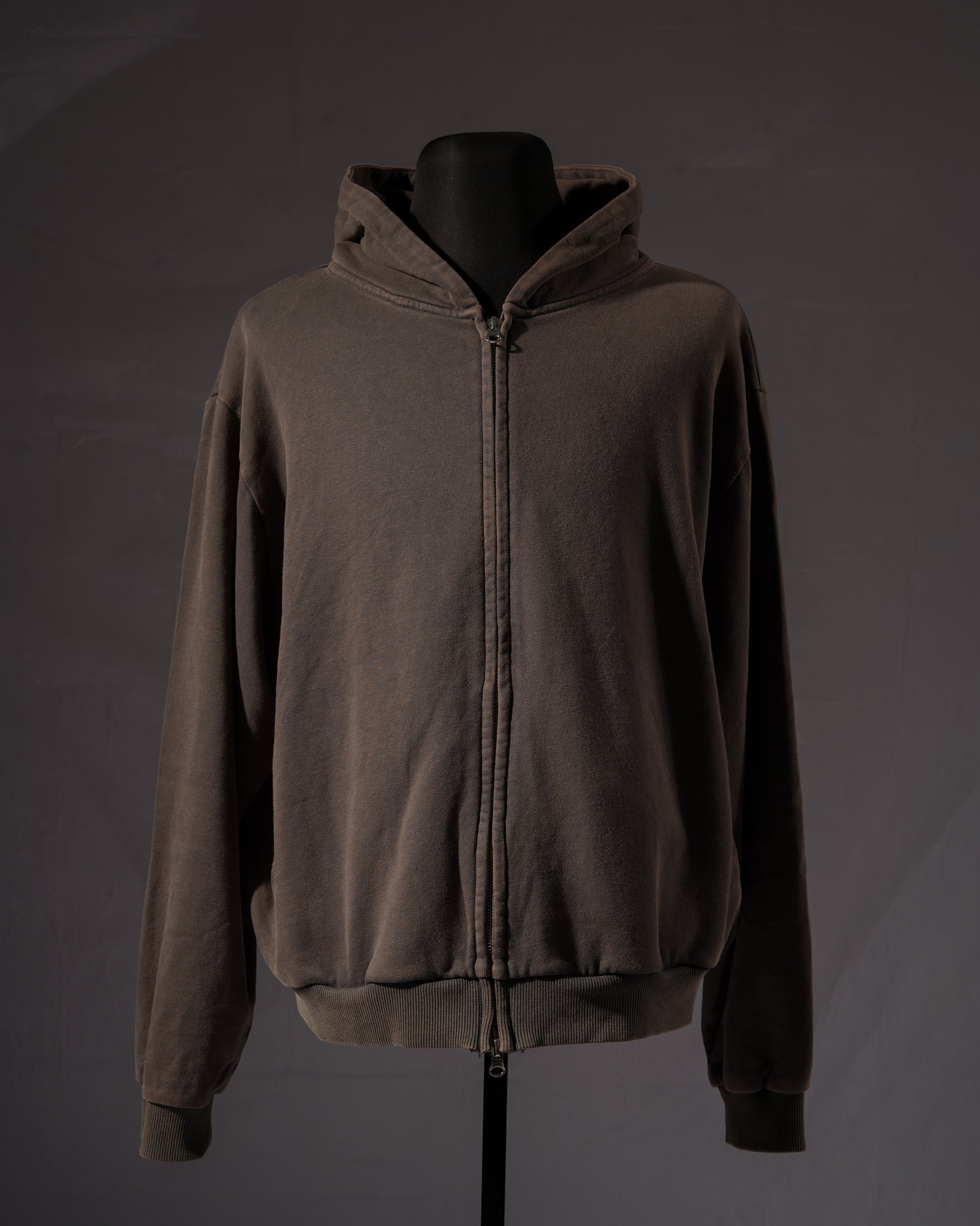 The Full Zip Hoodie is made from 360gsm 100% cotton with a vintage wash to create a soft worn-out look. Featuring a relaxed semi-cropped fit that finishes at the waist, dropped shoulders, two-way zipper front, and hidden side pockets to maintain a minimal silhouette.