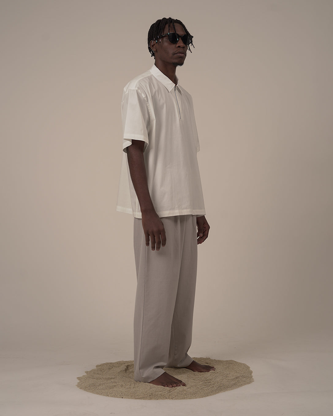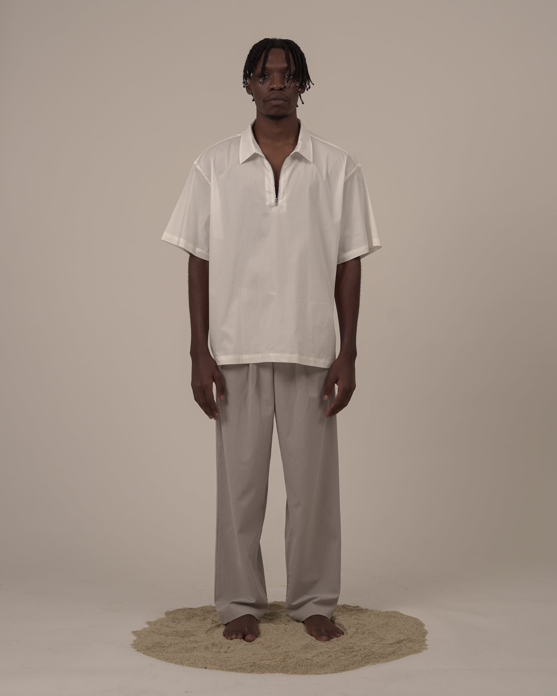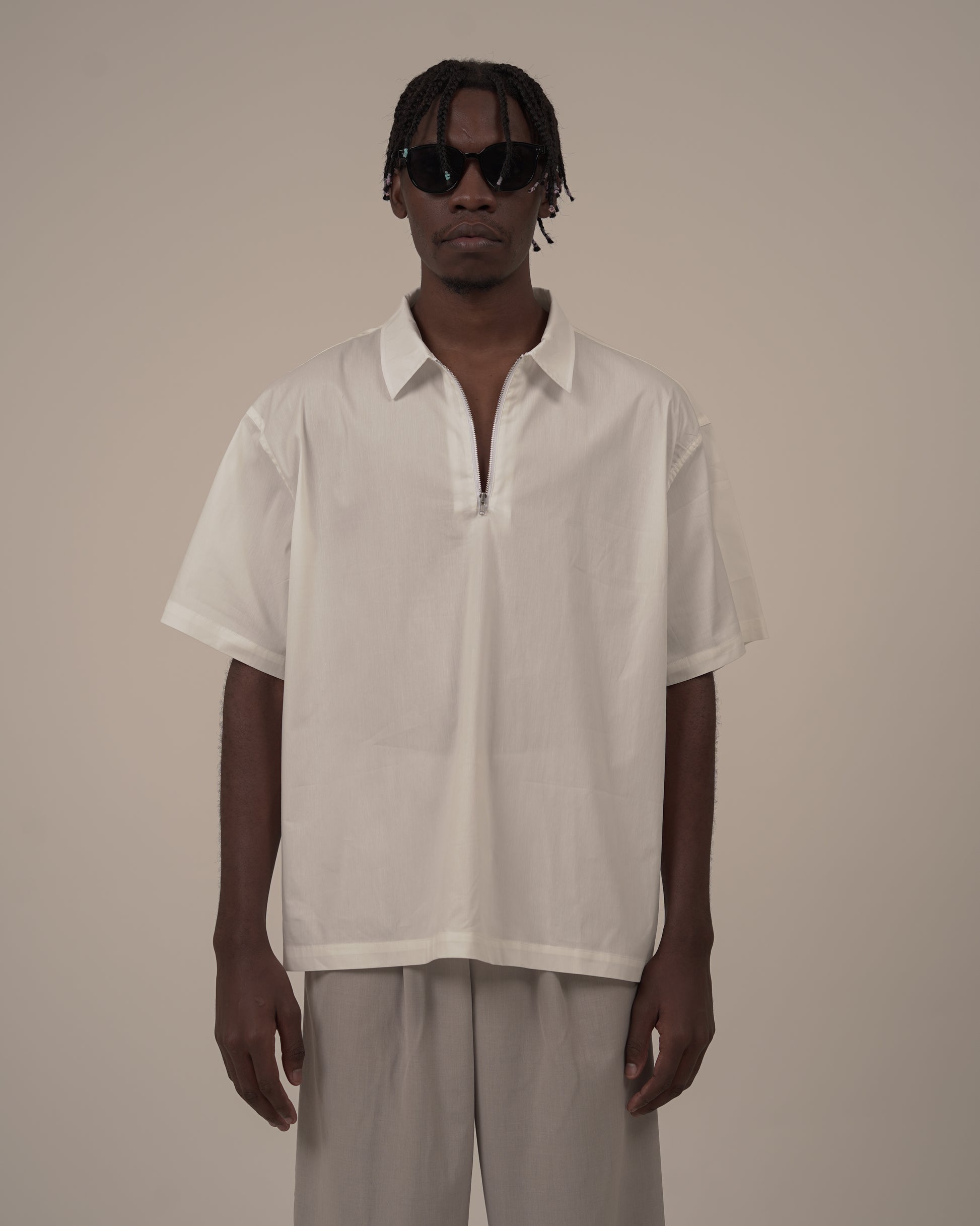 Reuben Ebina HALF SLEEVE ZIP SHIRT - WHITE