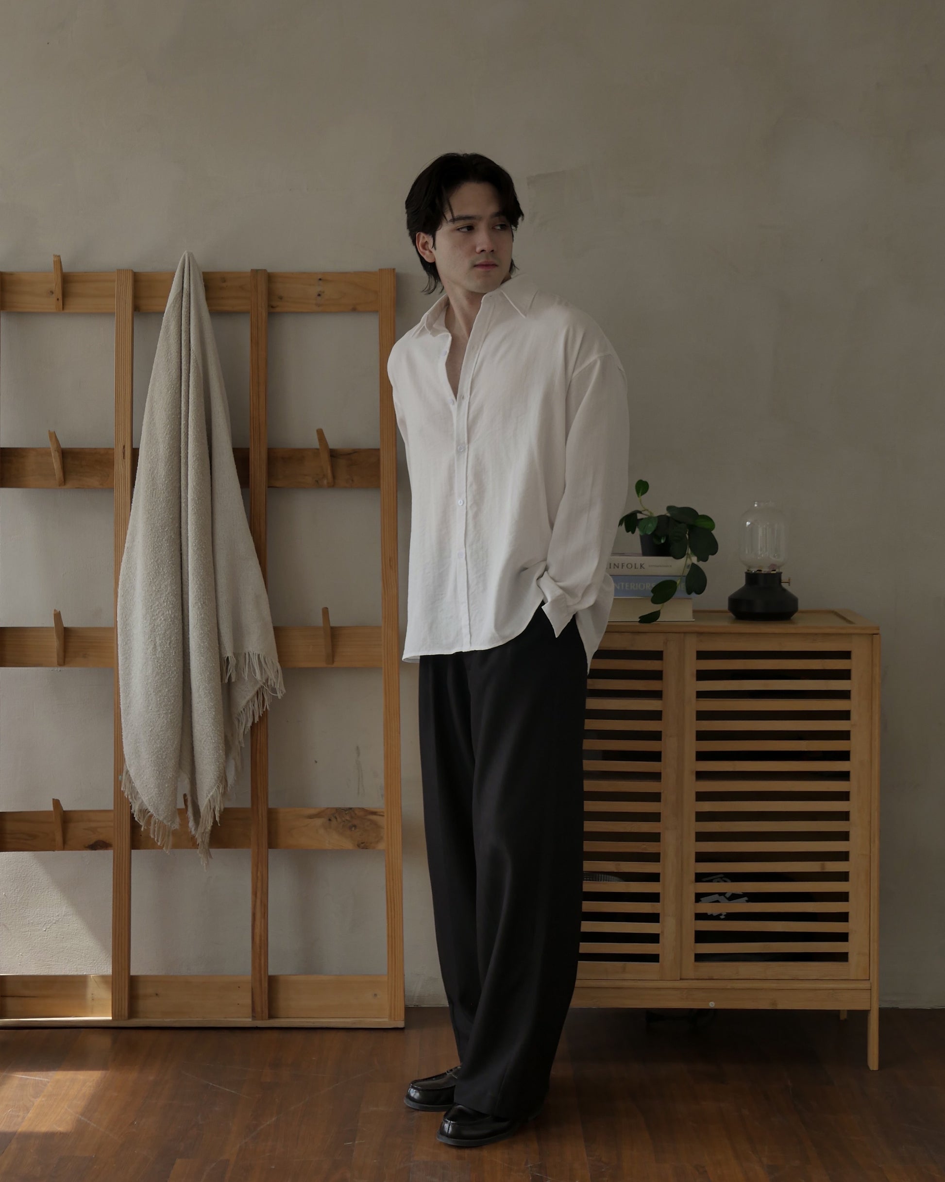 The Harvey Shirt is made from a lightweight and breathable linen fabric, with a soft hand feel and luxurious drape. Featuring a relaxed fit, and a curved back hemline.