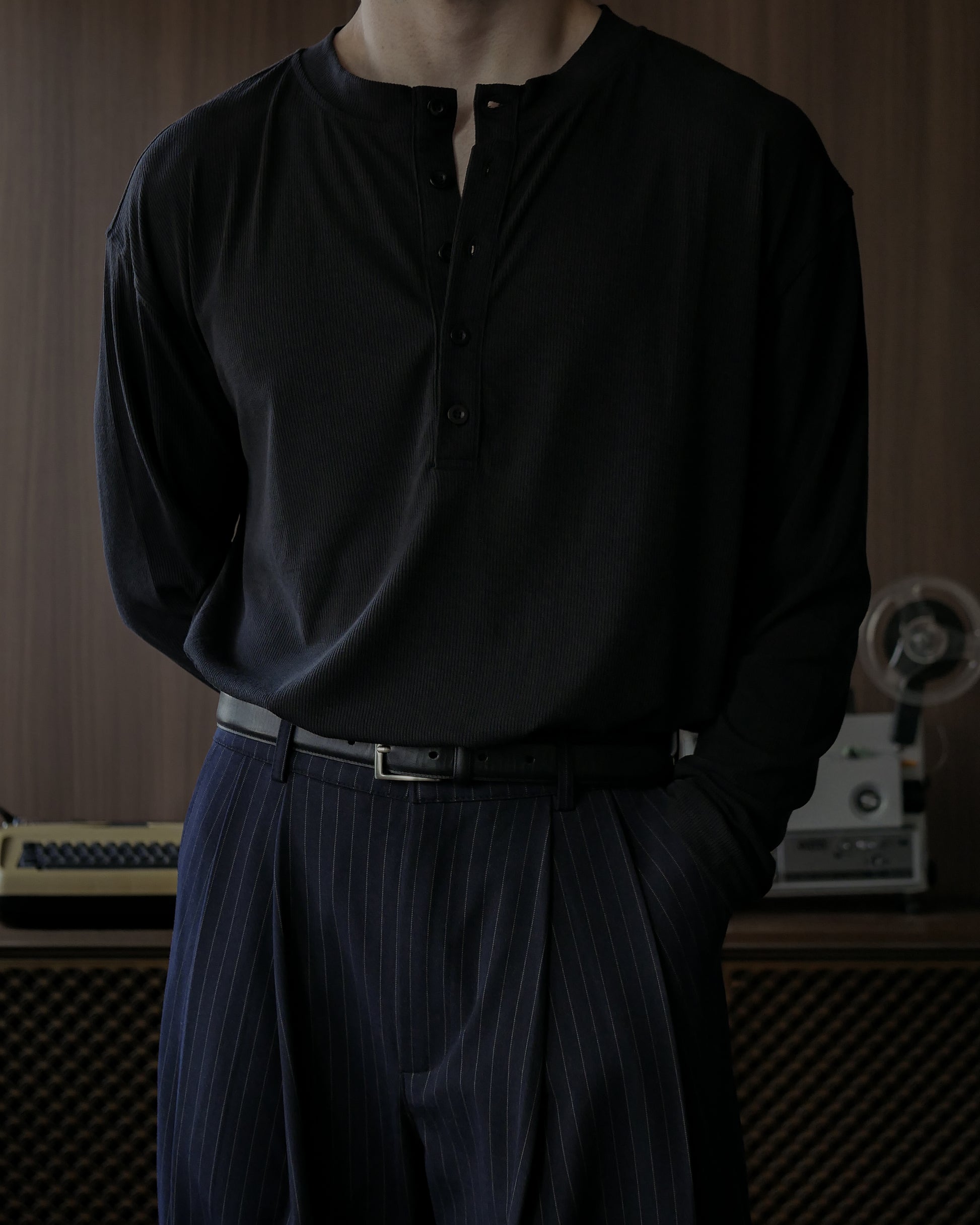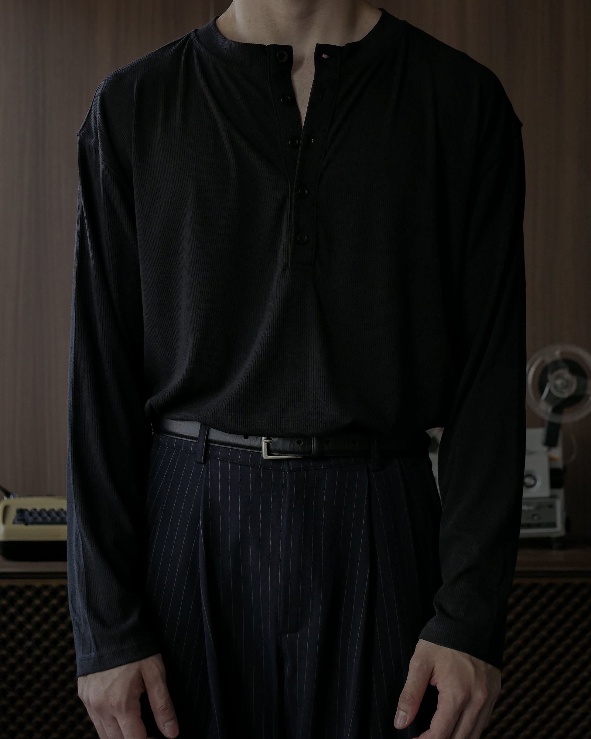 RALPH RIBBED LONG SLEEVES HENLEY - BLACK