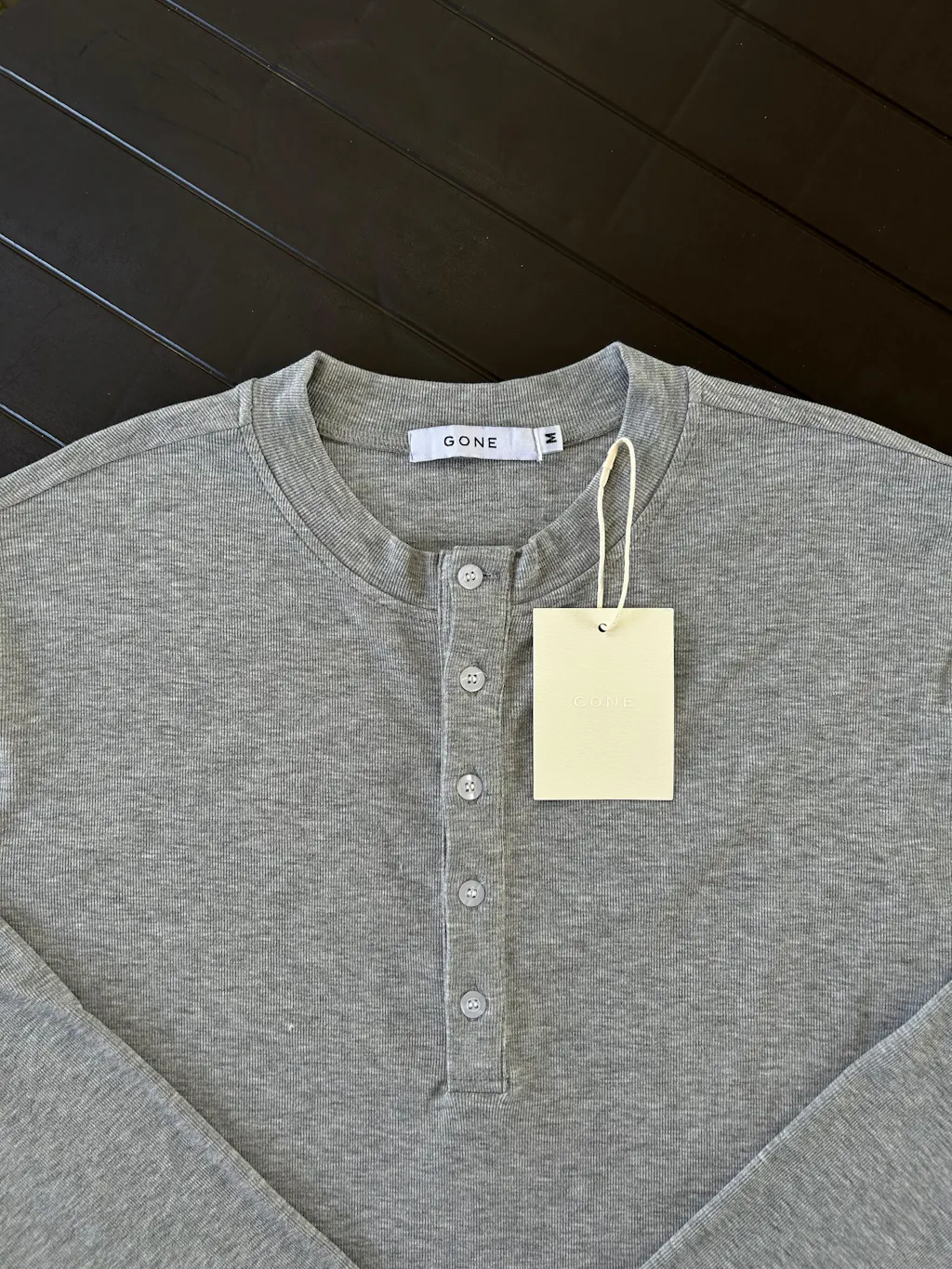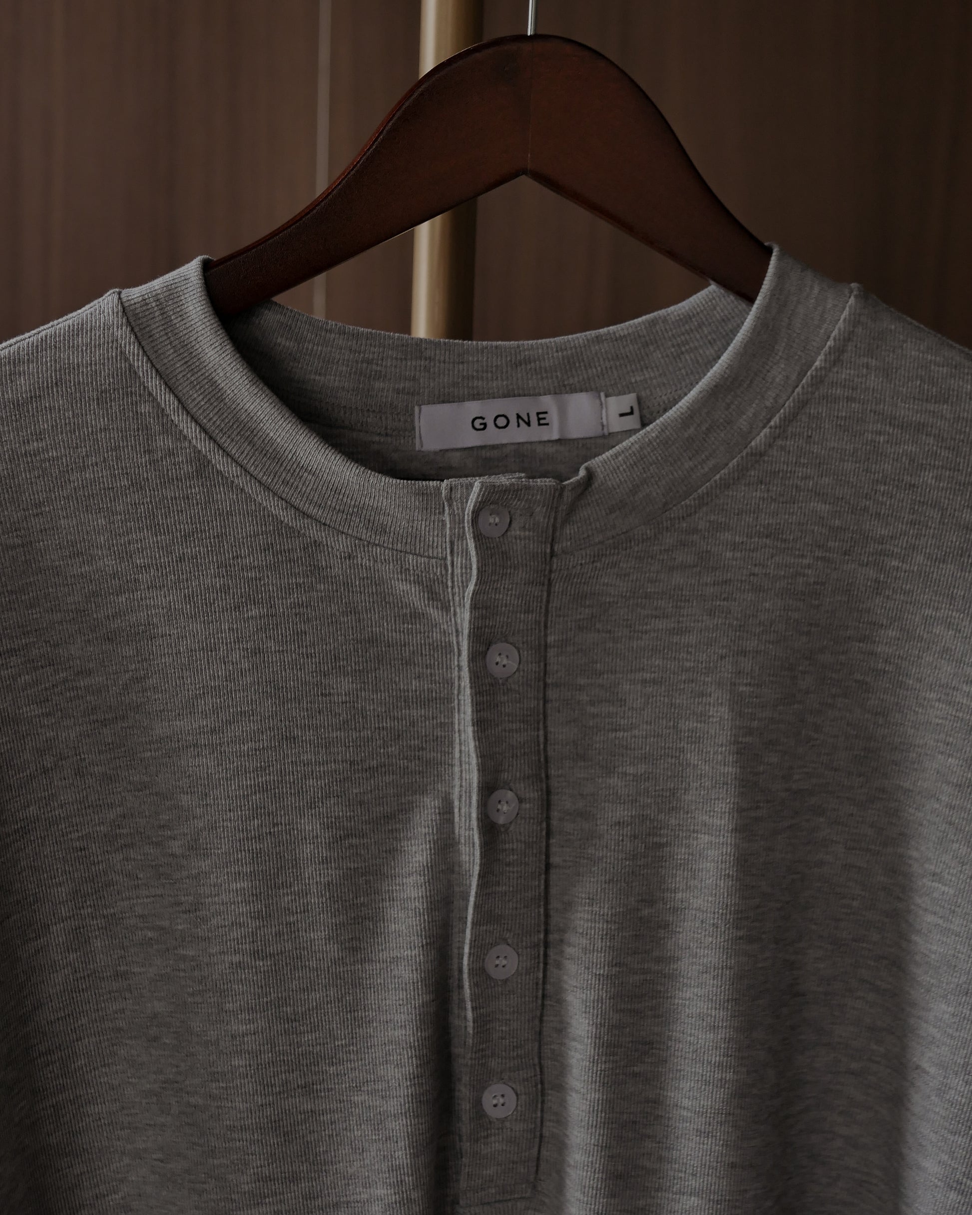 RALPH RIBBED LONG SLEEVES HENLEY - GRAY