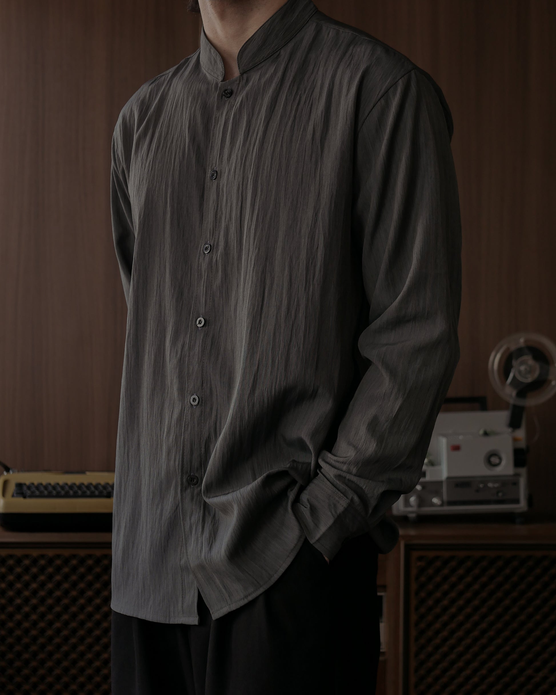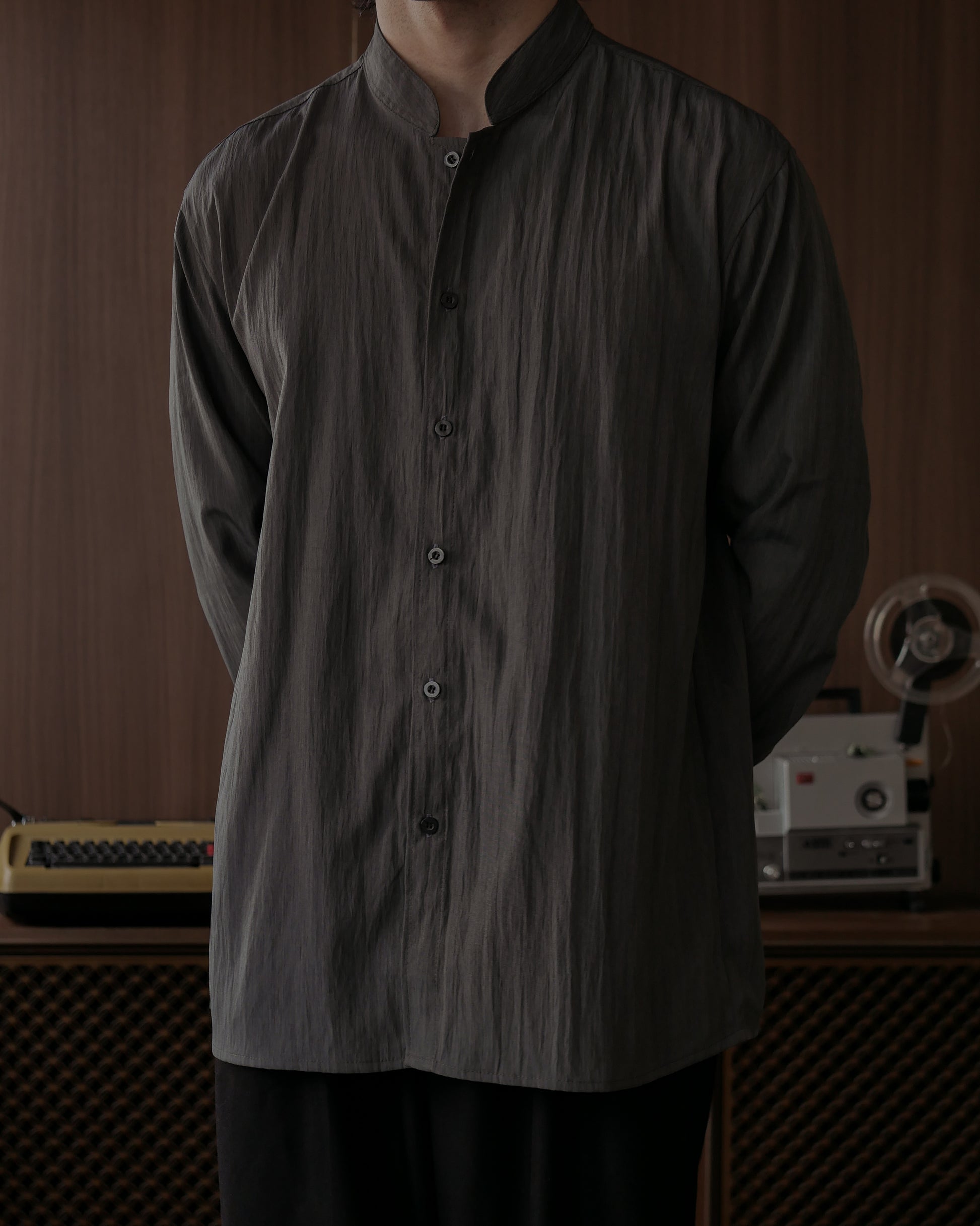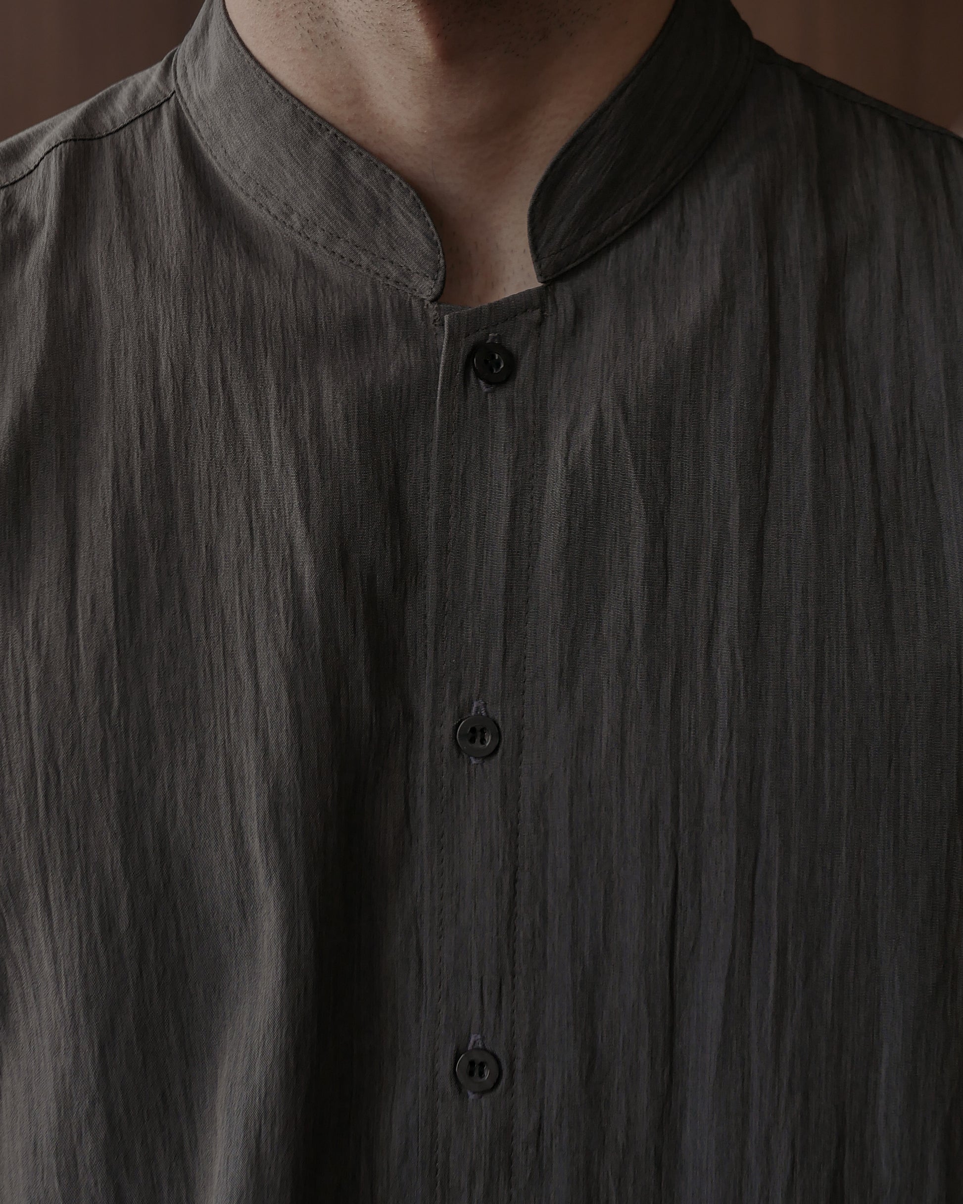 WANG MANDARIN COLLAR SHIRT - CHARCOAL