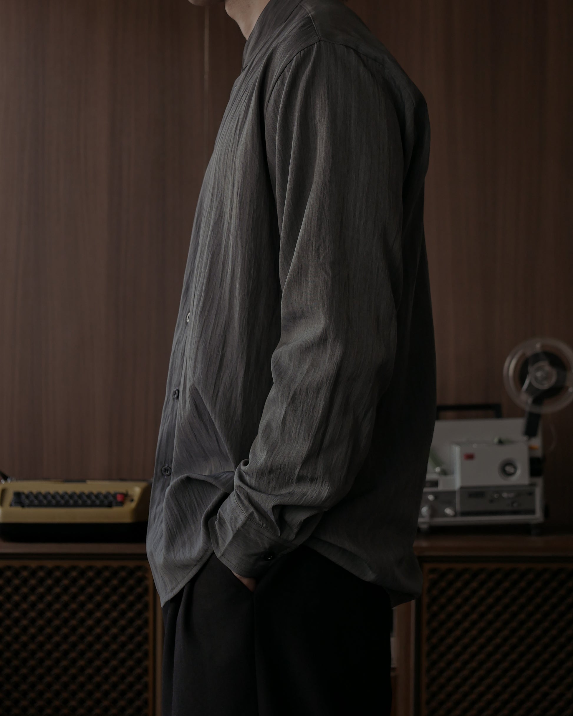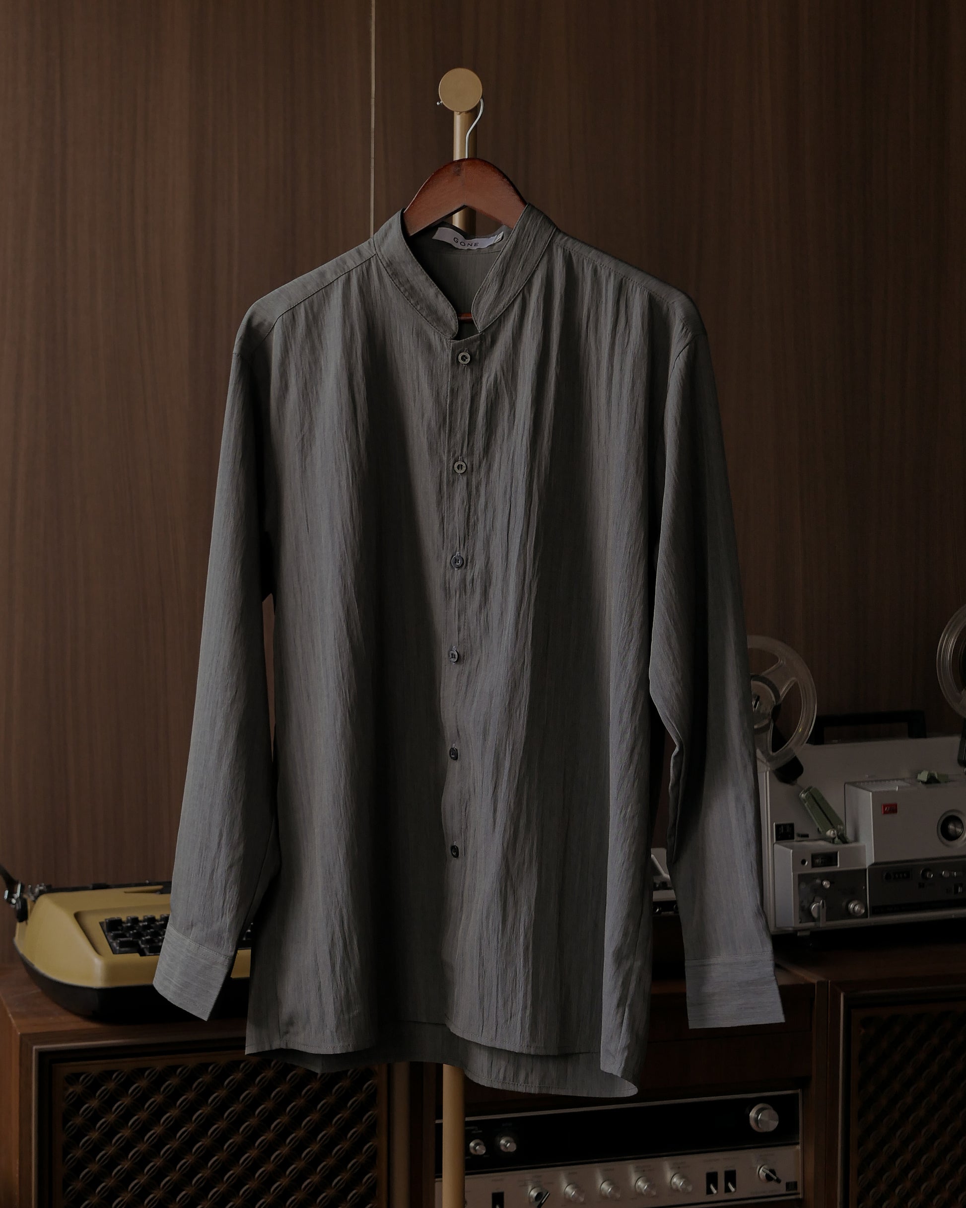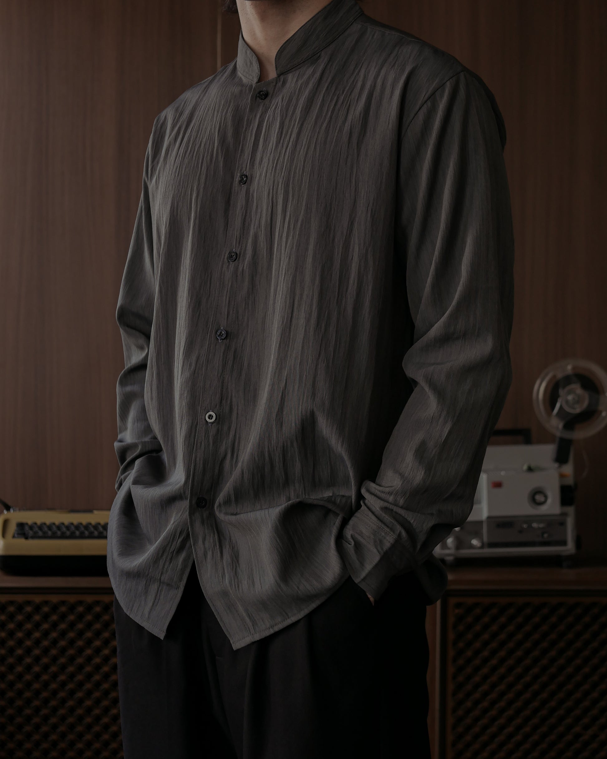 WANG MANDARIN COLLAR SHIRT - CHARCOAL
